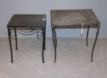 Two Iron Side Tables, one 16" square, one 13" square Two Iron Side Tables, one 16" square, one 13" square