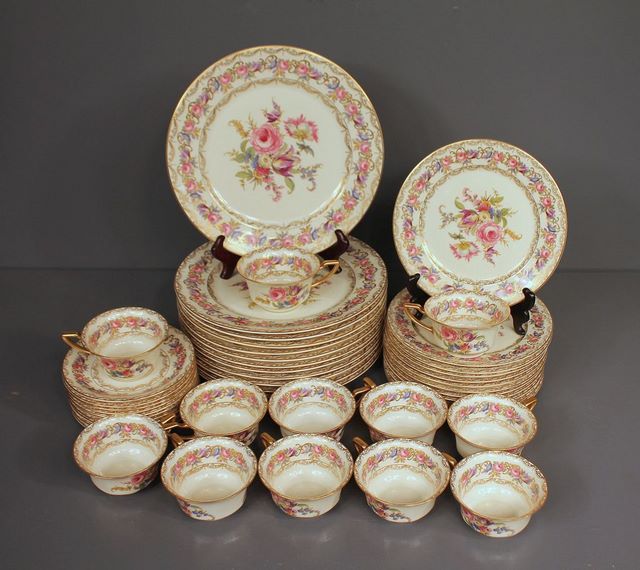Vintage Rosenthal Set of China "Vienna" Pattern, consisting of; twelve 10" dinner plates, twelve 7 3/8" salad plates, eleven cups, eleven saucers; 46 total pieces Vintage Rosenthal Set of China "Vienna" Pattern, consisting of; twelve 10" dinner plates, twelve 7 3/8" salad plates, eleven cups, eleven saucers; 46 total pieces