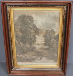Victorian Black and White Print of Child Drinking Water, with sheep and goats, in Victorian frame; 24 1/2" w., 31" h. Victorian Black and White Print of Child Drinking Water, with sheep and goats, in Victorian frame; 24 1/2" w., 31" h.