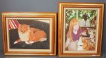 Two Oil Paintings, one of young girl and dogs signed Elizabeth 17" w., 21" h., one of dog 21" w., 17" h. Two Oil Paintings, one of young girl and dogs signed Elizabeth 17" w., 21" h., one of dog 21" w., 17" h.
