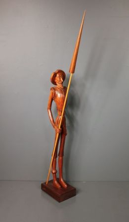 Hand Wood Carving of Man with Arrow; 42 1/2" h. Hand Wood Carving of Man with Arrow; 42 1/2" h.