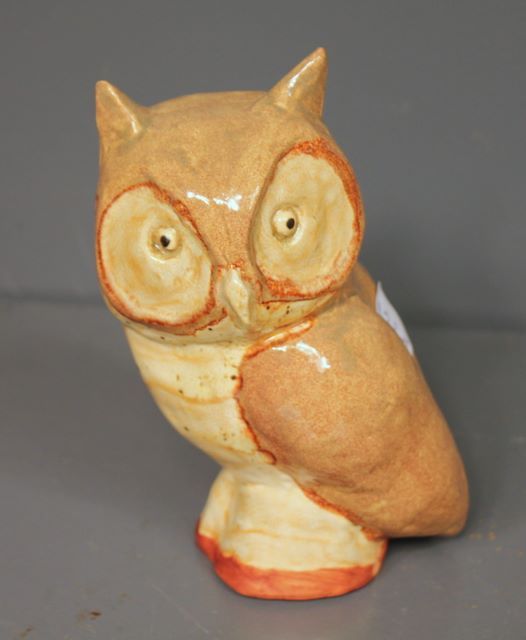 Signed Wolfe Pottery Owl; 6 1/2" h. Signed Wolfe Pottery Owl; 6 1/2" h.