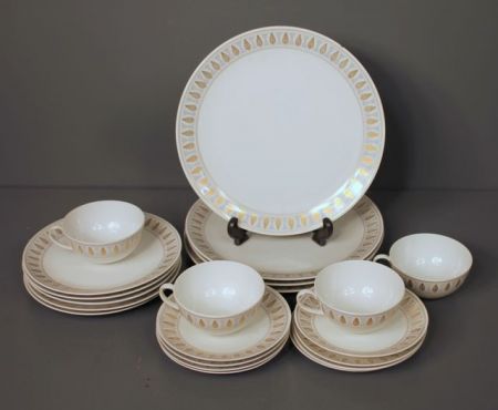Partial Setting of Arzfrog German China; four diner plates (one chipped), five salad plates, one fruit plate, seven saucers, four cups Partial Setting of Arzfrog German China; four diner plates (one chipped), five salad plates, one fruit plate, seven saucers, four cups