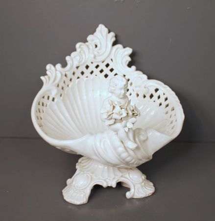 1306 Made in Italy Ceramic Centerpiece with Cupid Holding Flowers