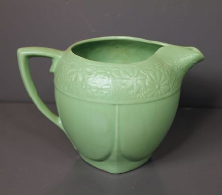 Green Lemonade form Pitcher with Border, signed Niloak, matte finish; 7" h., 11" dia. Green Lemonade form Pitcher with Border, signed Niloak, matte finish; 7" h., 11" dia.