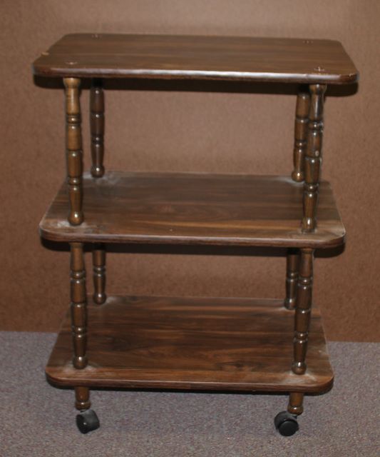 Three Tier Table on Rollers; 31" h., 24" w. Three Tier Table on Rollers; 31" h., 24" w.