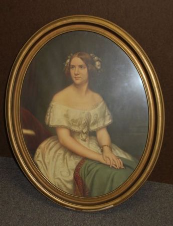 Oval Framed Print of Lady; 33" h., 26" w. Oval Framed Print of Lady; 33" h., 26" w.