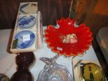 Group of Assorted Decorative Items, includes; handmade ashtray, three small decorative vases, "Thank You For Not Smoking" sign, toothbrush holder, four small ashtrays, soup holders, milk glass candlestick holders Group of Assorted Decorative Items, includes; handmade ashtray, three small decorative vases, "Thank You For Not Smoking" sign, toothbrush holder, four small ashtrays, soup holders, milk glass candlestick holders