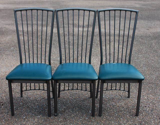 Three Metal Chairs, padded seats Three Metal Chairs, padded seats