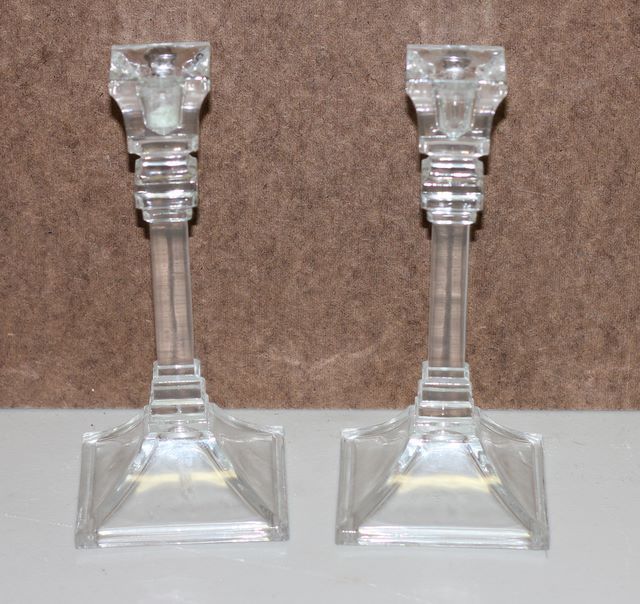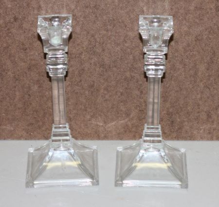 Pair of Glass Candle Holders; 8"h. Pair of Glass Candle Holders; 8"h.