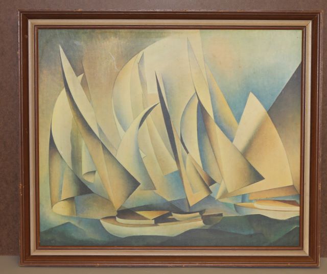 Two Prints printed on board (sailboats, bridge) Two Prints printed on board (sailboats, bridge)