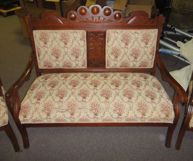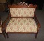3 pcs. Eastlake Parlor Set; chair, settee, bussle bench, oak 3 pcs. Eastlake Parlor Set; chair, settee, bussle bench, oak