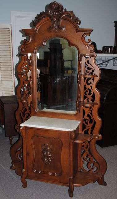Victorian Eterge; 79" h., 49" w., corner piece damange on marble Victorian Eterge; 79" h., 49" w., corner piece damange on marble