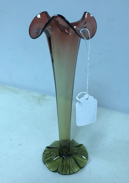 VTG 60's Art Glass Hand Blown Amberina Flower Bud Vase Footed, 10 1/2"h. VTG 60's Art Glass Hand Blown Amberina Flower Bud Vase Footed, 10 1/2"h.
