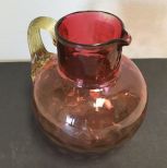 235 VTG 60's Art Glass Hand Blown Amberina Honeycomb Milk Pitcher