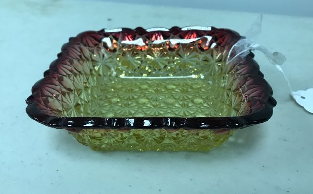VTG 60's Art Glass Hand Blown Amberina Mt. Washington Rare Cut Glass Square Candy Dish, 1 1/2"h., 5"w. VTG 60's Art Glass Hand Blown Amberina Mt. Washington Rare Cut Glass Square Candy Dish, 1 1/2"h., 5"w.