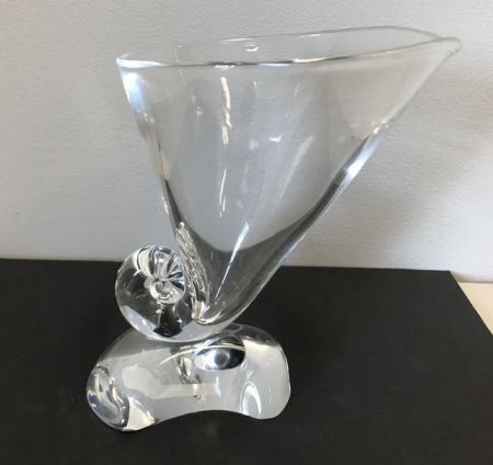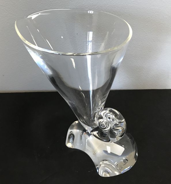 Sighted Steuben Cornucopia Vase, clear glass, signed, 7"h. Sighted Steuben Cornucopia Vase, clear glass, signed, 7"h.