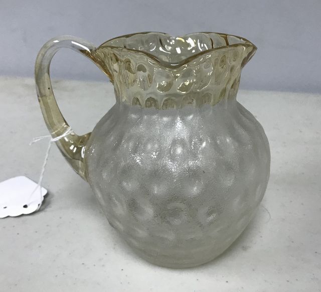 264 VTG 60's Art Glass Hand Blown Amberina Etching Small Thumbprint Streamer