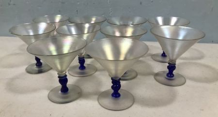 Steuben Art Glass Verre De Soie Blue Rope Twist Martini Glasses, 4"h., 10 total. Steuben Art Glass Verre De Soie Blue Rope Twist Martini Glasses, 4"h., 10 total.