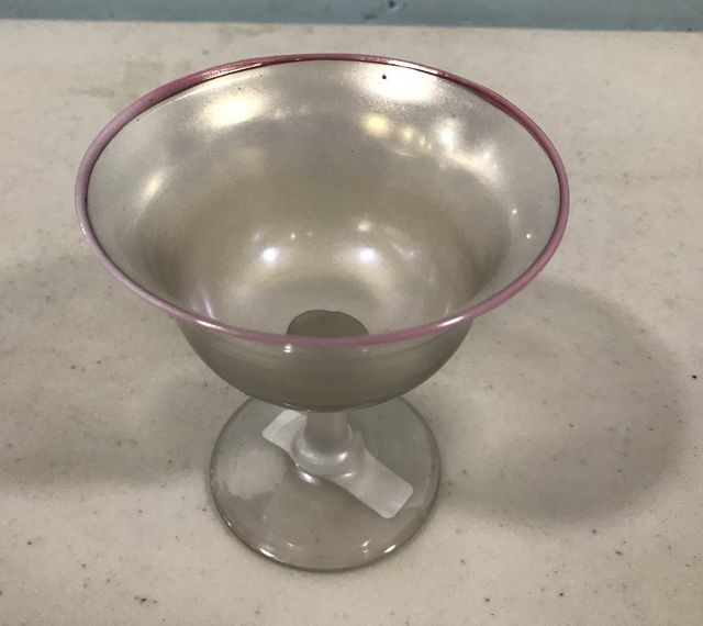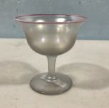 Steuben Art Glass Verre De Soie Sherbet & Underplate with Pink Rim, 4"h. Steuben Art Glass Verre De Soie Sherbet & Underplate with Pink Rim, 4"h.