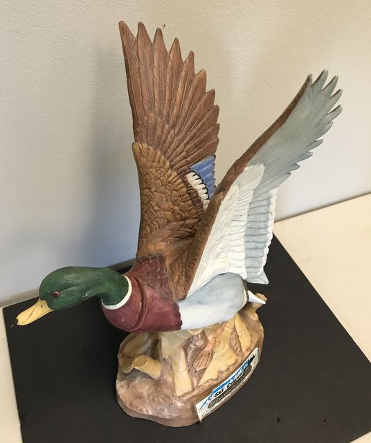 Wild Mallard Duck in Flight Decanter, Kentucky Bourbon, 13"h., 7"w. Wild Mallard Duck in Flight Decanter, Kentucky Bourbon, 13"h., 7"w.