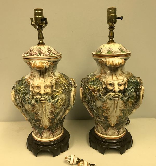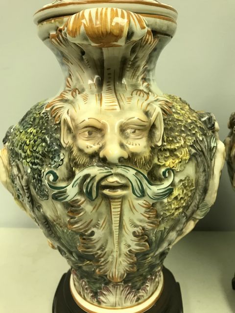 310 Pair of Early Capodimonte Urns turned into Lamps