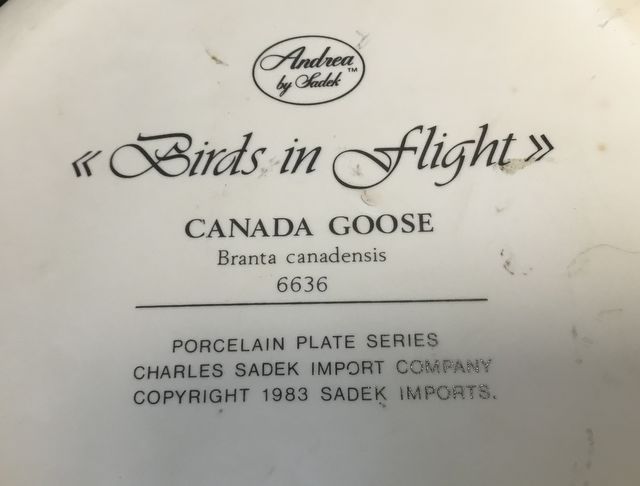 Birds in Flight Canada Goose, porcelain plate series by Andrea, 8 1/2"dia. Birds in Flight Canada Goose, porcelain plate series by Andrea, 8 1/2"dia.