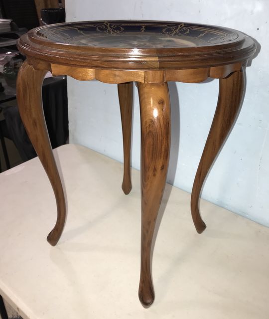 Royal Vinna Plaque Plate Made Into Table, accent table, cherry table, 21"h., 18"dia. Royal Vinna Plaque Plate Made Into Table, accent table, cherry table, 21"h., 18"dia.