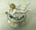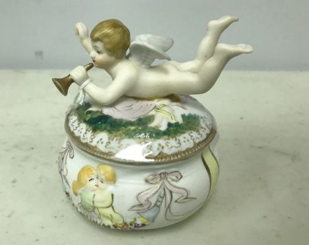 521 Vintage Hand Painted Porcelain Angel Ring Box