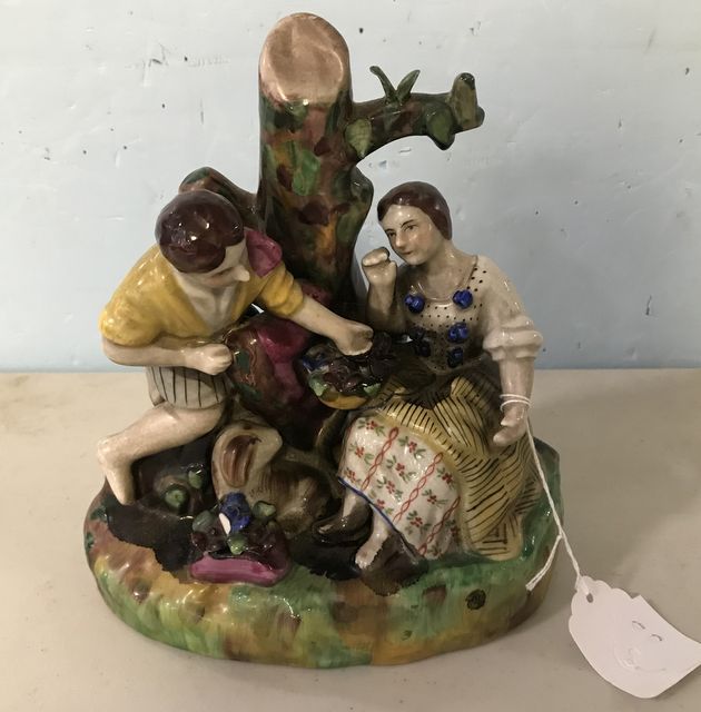 Staffordshire Style Figurine of Man and Lady, hand painted, 10"h. Staffordshire Style Figurine of Man and Lady, hand painted, 10"h.