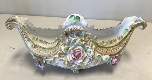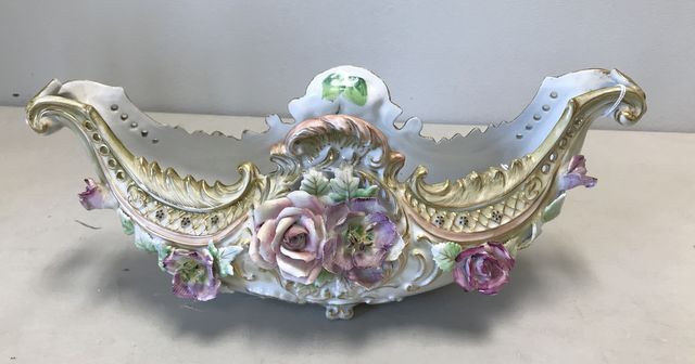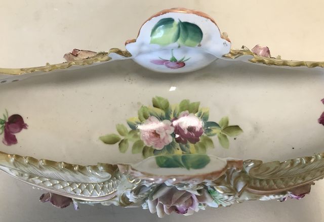 Fine Hand Painted Porcelain Centerpiece w/ Porcelain Roses, 5" Fine Hand Painted Porcelain Centerpiece w/ Porcelain Roses, 5"