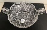 Brilliant Cut Crystal Double Handle Nappie, 10"w. Brilliant Cut Crystal Double Handle Nappie, 10"w.