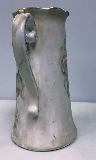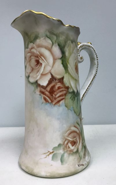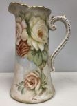 Artist Signed Large Hand Painted Lemonade Pitcher, roses, H: 12.5" Artist Signed Large Hand Painted Lemonade Pitcher, roses, H: 12.5"