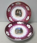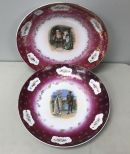 666 19th C Pair of Hand Painted Austrian Chargers "Carisbad Austre"