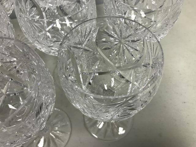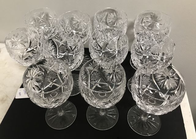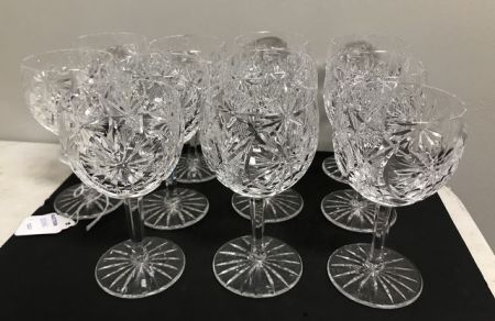 11 Piece Cut Crystal Wine Glasses, stems, hobstar, 5"h. 11 Piece Cut Crystal Wine Glasses, stems, hobstar, 5"h.