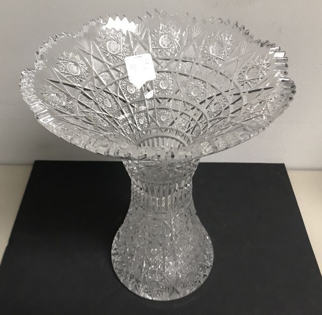 Oval Cut Crystal Hobstar Vase, has rim chip, 10"h., 8"dia. Oval Cut Crystal Hobstar Vase, has rim chip, 10"h., 8"dia.