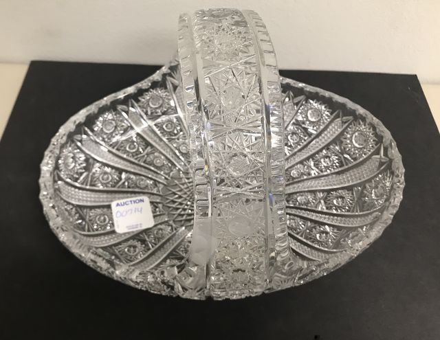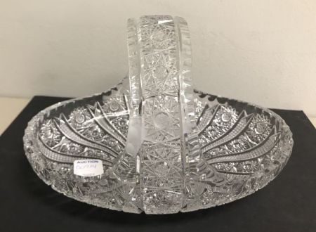 Cut Crystal Bride's Hobstar Basket, 6"h., 9"w. Cut Crystal Bride's Hobstar Basket, 6"h., 9"w.