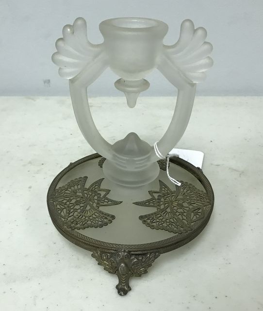 Art Nouveau Frosted Candle Stick, footed. H: 6" Art Nouveau Frosted Candle Stick, footed. H: 6"