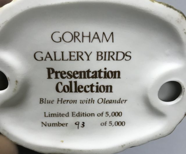 Pair of Porcelain Blue Heron Presentation Collection #93 of 5000, Gorham Gallery Birds, 8"h. Pair of Porcelain Blue Heron Presentation Collection #93 of 5000, Gorham Gallery Birds, 8"h.