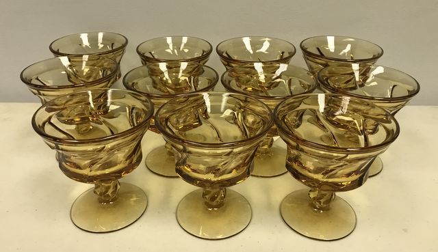 Vintage Amber Depression Set of 11 Sherbets, 4"h. Vintage Amber Depression Set of 11 Sherbets, 4"h.