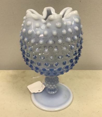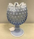 Vintage Blue Cramped Top Opalescent Hobnail Vase, footed, 8"h. Vintage Blue Cramped Top Opalescent Hobnail Vase, footed, 8"h.