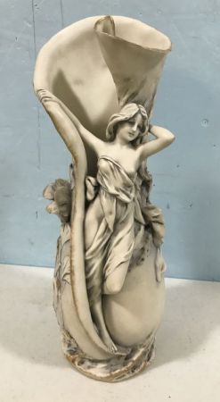 Royal Dux Bohemia Exquisite Art Nouveau Style vase, Woman with a Robe Draping from her Shoulders, great detail, makers stamp at bottom. H: 15 1/4" Royal Dux Bohemia Exquisite Art Nouveau Style vase, Woman with a Robe Draping from her Shoulders, great detail, makers stamp at bottom. H: 15 1/4"