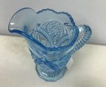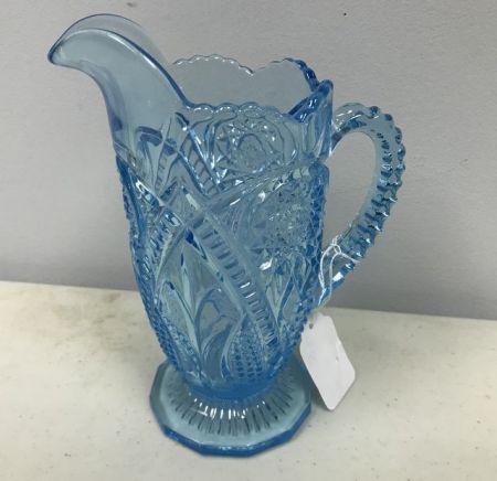 Light Blue Crystal Pitcher, hobstar design, good condition, 8 1/2"h. Light Blue Crystal Pitcher, hobstar design, good condition, 8 1/2"h.