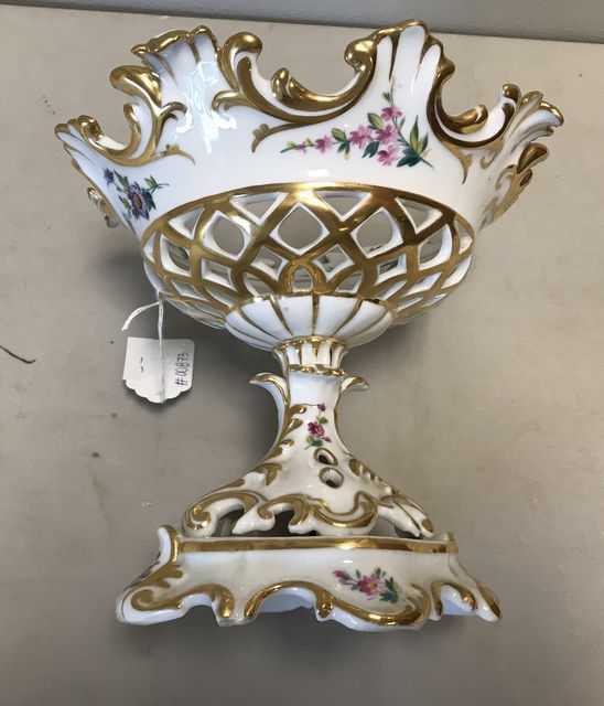 Small 19th Century Old Paris Centerpiece/ compote, gold gilt, hand painted, good condition, 8" Small 19th Century Old Paris Centerpiece/ compote, gold gilt, hand painted, good condition, 8"