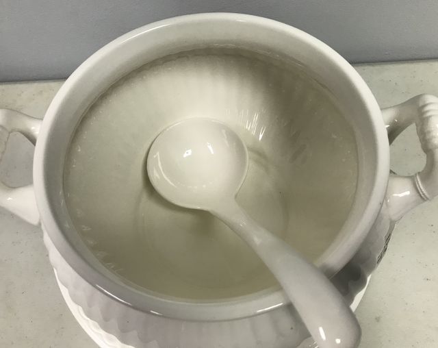 Soup Terrine With Ladle & Under Tray, 10"h. Soup Terrine With Ladle & Under Tray, 10"h.