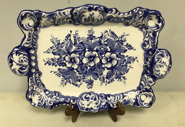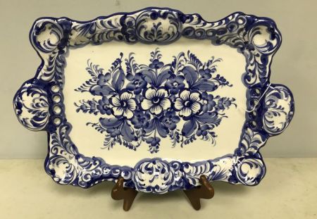 Hand Painted Floral Blue & White Platter, number mark. H: 2 1/5" Hand Painted Floral Blue & White Platter, number mark. H: 2 1/5"
