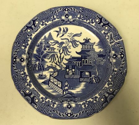 Blue & White Small Dessert Plate Oriental Vintage Burleigh Ware Willow, 7"dia. Blue & White Small Dessert Plate Oriental Vintage Burleigh Ware Willow, 7"dia.
