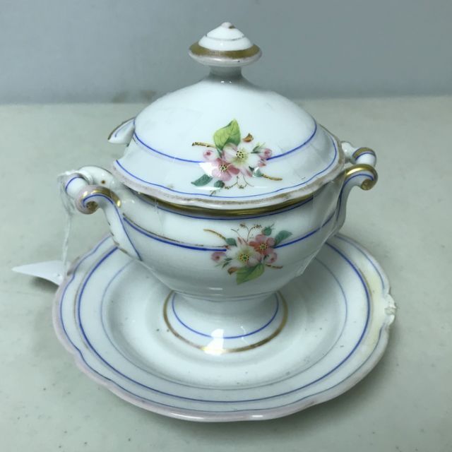 Antique Old Paris Jam Pot, hand painted, floral, gold gilt trim, 4 1/2"h. Antique Old Paris Jam Pot, hand painted, floral, gold gilt trim, 4 1/2"h.