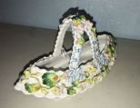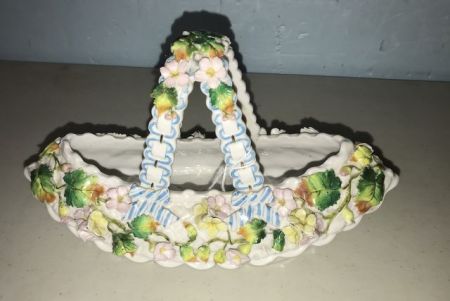 1087 Antique French Porcelain Basket With Porcelain Flowers