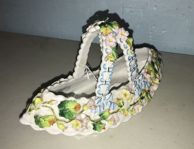 Antique French Porcelain Basket With Porcelain Flowers, ornate, 6"h. Antique French Porcelain Basket With Porcelain Flowers, ornate, 6"h.